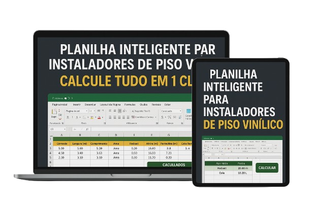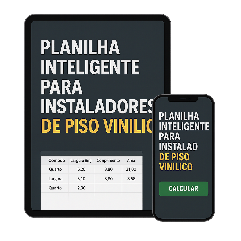 Um arquivo 100% funcional e inteligente, feito sob medida para instaladores de piso vinílico. Basta inserir as medidas do ambiente e o tipo de serviço — e a mágica acontece.
